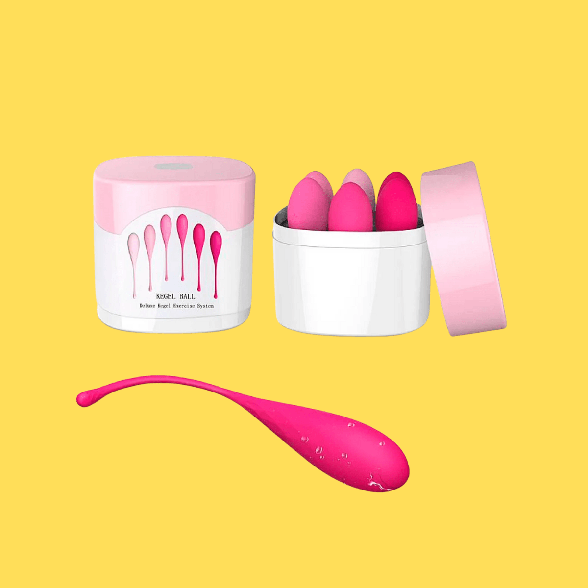 Eggs é um kit de pompoarismo, composto por 6 bolas. Cada bola possui um peso diferente para cada estágio do pompoarismo.