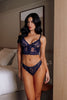 Tule bordado 30% poliamida e 70% poliester, tule 100% poliamida, renda 85% poliamida 15% elastano, malha 100% algodão, bojo 60% poliuretano 40% poliéster
